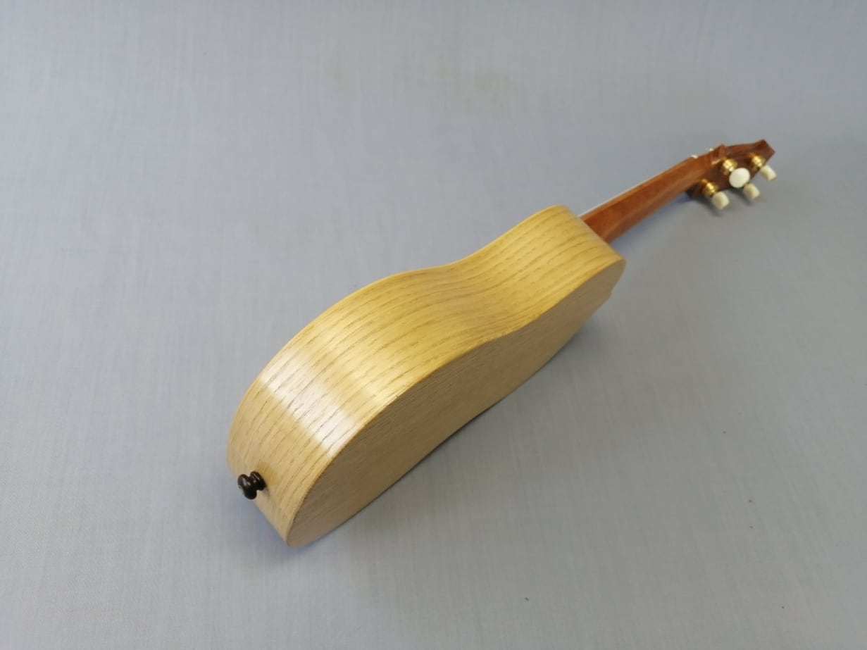・全体のデザイン(ボディのサイズ・形状・ヘッドデザイン)は、1733年にフロリダ沖で難破沈没したスペイン船(サン・フェルナンド号)から引き揚げられた小型ギター残骸から復元し、それをウクレレ仕様にしたので、全体に古楽器風の味わいになっています。このスペイン船の小型ギターはルネサンスギターの一種と考えられており、ルネサンスギターはウクレレの最古の祖先と考えられます。(ざっくり言うと、スペインのルネサンスギターがポルトガルでカヴァキーニョになりそれがハワイに渡ってウクレレになったという流れ)