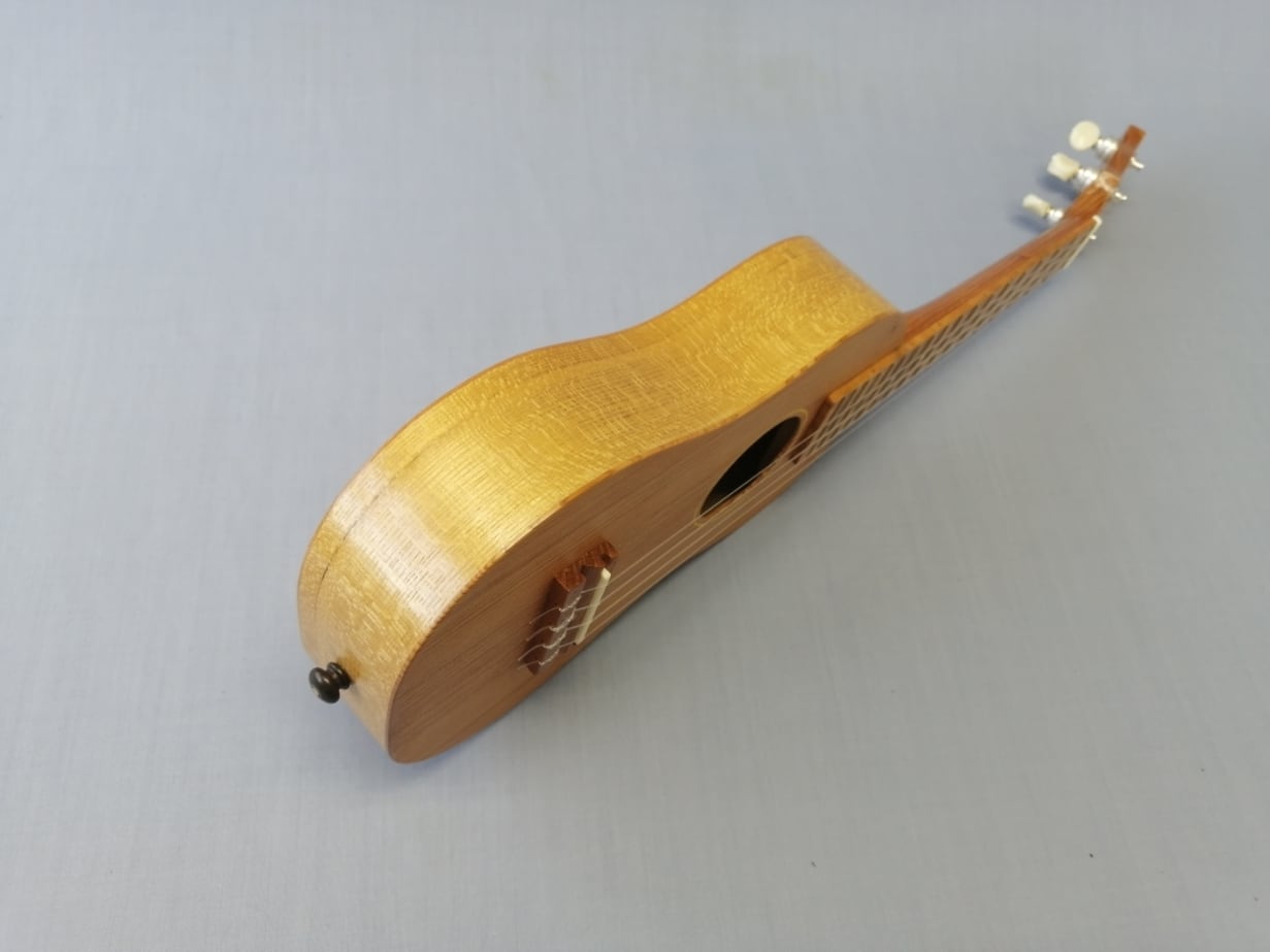 ・ウクレレ全体のデザイン(ボディのサイズ・形状)は18世紀の古楽器の再現になっています。フロリダ沖のスペインの沈没船(1733年サンフェルナンド号)から引き揚げられた小型ギター残骸からの復元デザインです。この小型ギターは、ルネサンスギターの一種と考えられており、ルネサンスギターはウクレレの祖先と考えられます。(ざっくり言うと、スペインのルネサンスギターがポルトガルでカヴァキーニョ(ブラギーニャ)になり、それがハワイに渡ってウクレレになったという流れ)